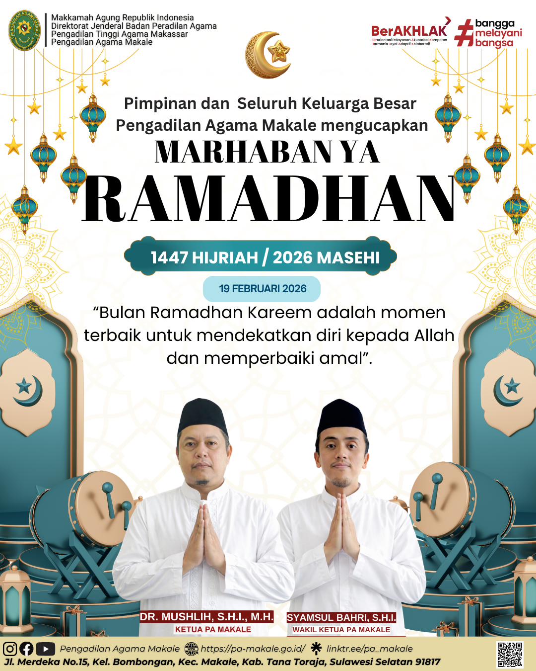 PA Makale Ucapkan Selamat Menjalankan Ibadah Puasa 1447 Hijriah