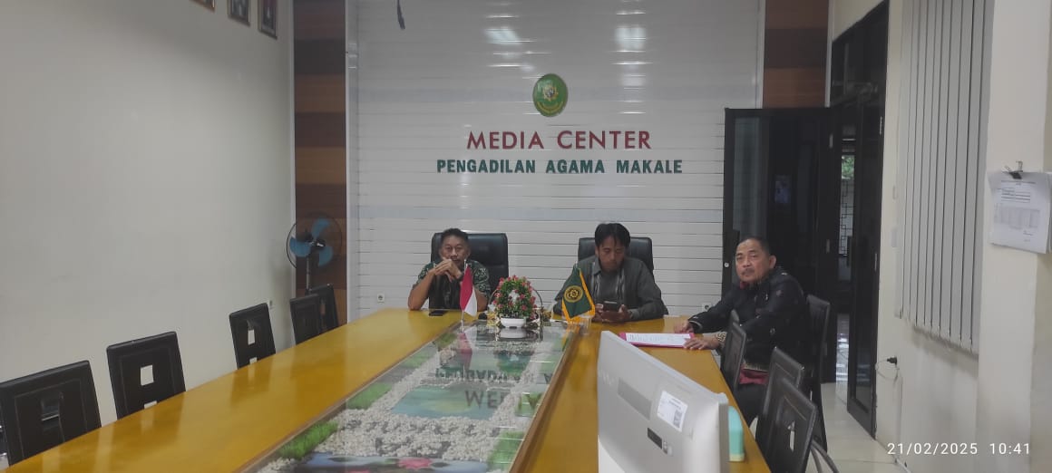Pada Jumat, 21 Februari 2025, Pengadilan Agama Makale berpartisipasi dalam kegiatan webinar zoom meeting yang membahas "Penerapan Prinsip Kepentingan Terbaik Anak dalam Perkara Dispenasi Kawin" . Zoom meeting tersebut dihadiri oleh perwakilan dari berbagai instansi, termasuk Pengadilan Agama Makale, sebagai bentuk kepedulian kepada masa depan anak dalam perkara dispensasi Kawin.