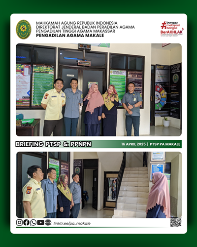 Written by Super User on 16 April 2025. Hits: 413 Briefing Petugas Pelayanan Terpadu Satu Pintu (PTSP) Kasubag Umum dan Keuangan, Nur Ilmi, SE. memberikan briefing kepada Petugas PTSP dan PPNPN Add comment Name (required) E-mail (required, but will not display) Title (required) Notify me of follow-up comments Refresh Send Cancel